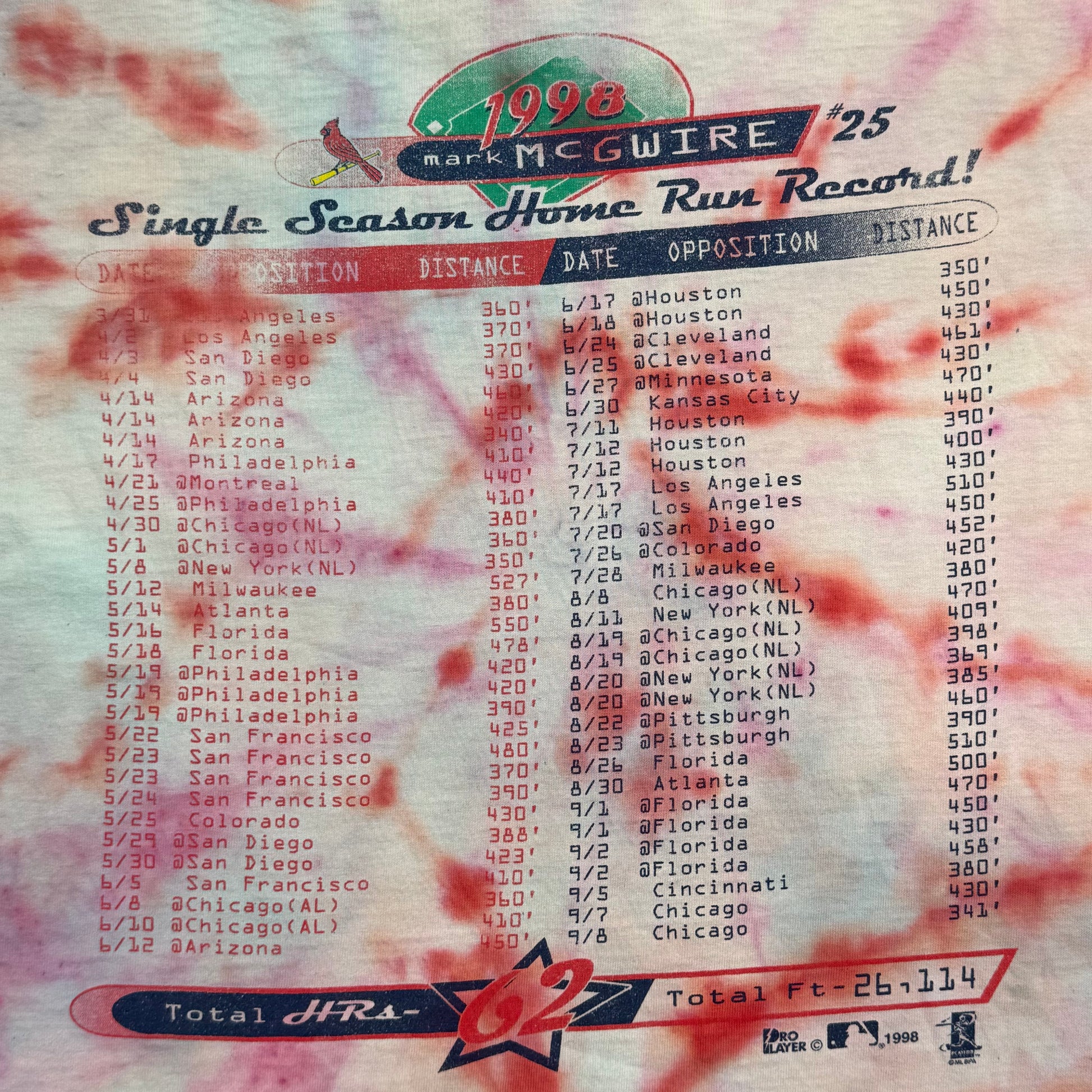 1998 Mark McGwire Home Run Record 62 tie dye tee